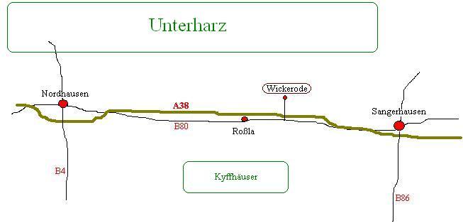Wickerode liegt ca. 2 km nördlich von Bennungen und ist durch die Autobahn A 38, die Bundesstraße B 80 / L 151 sowie die Landstraße L 231 zu erreichen.